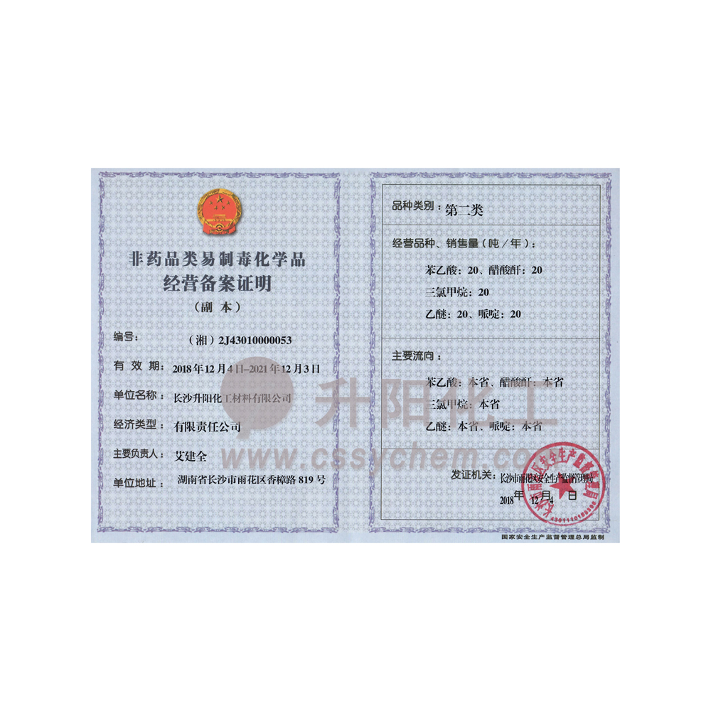 長沙升陽化工材料有限公司成立于2009年,是一家已經(jīng)擁有10年化工原料經(jīng)營歷史的企業(yè)。我們本著“服務(wù)至上,以誠為本”的原則,為廣大的新老客戶提供最優(yōu)質(zhì)的產(chǎn)品、最便捷的服務(wù)。歷經(jīng)10多年的積淀與發(fā)展,現(xiàn)已成長為湖南省頗具規(guī)模的專業(yè)化學品服務(wù)供應商之一。?公司集貿(mào)易,科研,倉儲,物流為