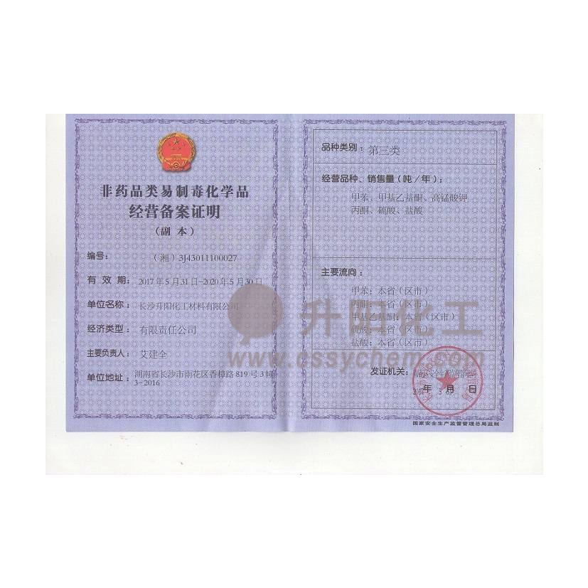 我公司具有危險化學品經(jīng)營許可證,易制毒和易制爆的經(jīng)營許可,現(xiàn)經(jīng)營銷售第二類、第三類易制毒,易制爆等危險化學品,我司對危險品購買嚴格按照國家規(guī)定實施,對所有易制毒,易制爆等一律不對個人銷售??蛻糍徺I以上危險化學品,需要提供相關(guān)公司資質(zhì)及備案資料,待我司審核后方可購買,具體說明如下:購買手續(xù):一、易制毒